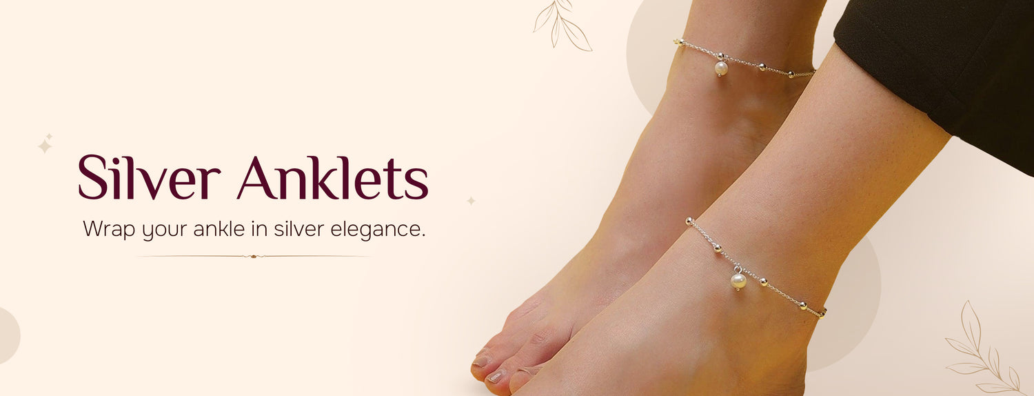 Enhance your elegance with our stunning silver pearl drop anklet, a delicate piece of foot...
